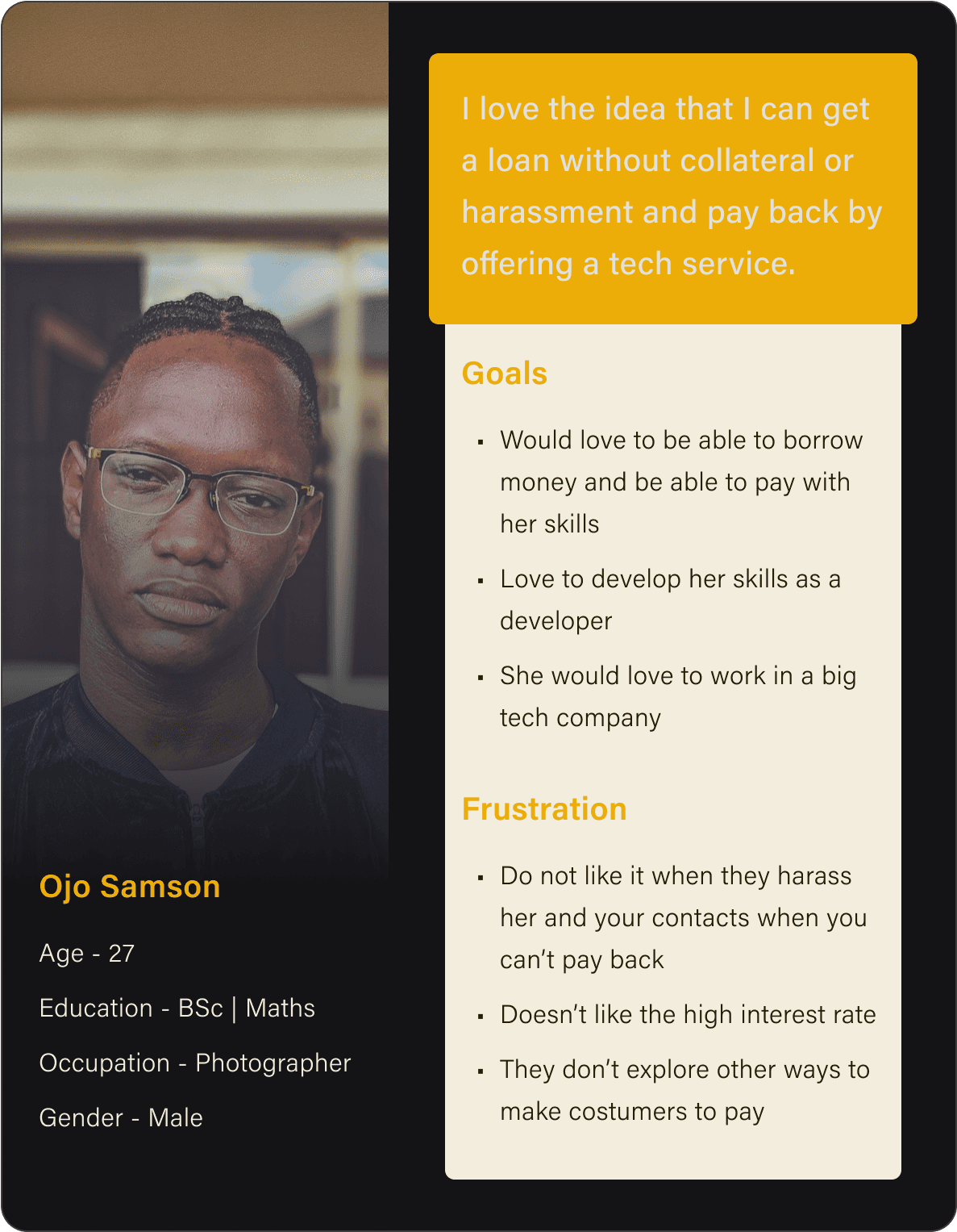 The goal of Heppa is to make it easier for students, recent graduates, and anyone in need to get a loan and repay it in a way that works for themโwhether that's by offering their tech skills or paying back the money. We also want to help people put their talents to use by connecting them with potential clients or job opportunities, making the whole process as smooth and rewarding as possible.